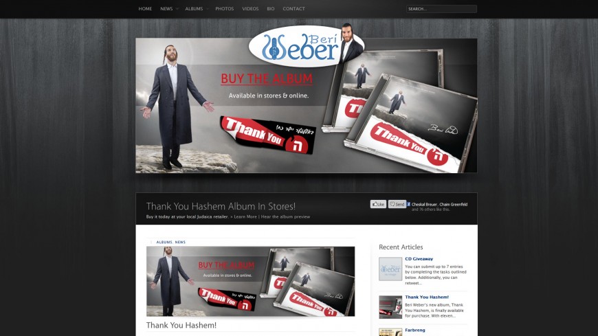 With a New album comes a New website. Hot off the release of his latest release “Thank You Hashem”, just a few weeks ago Beri Weber re-launched his website www.BeriWeber.com. The new site with its dynamic new design will help keep you informed with EVERYTHING Beri Weber related, check it out today.
