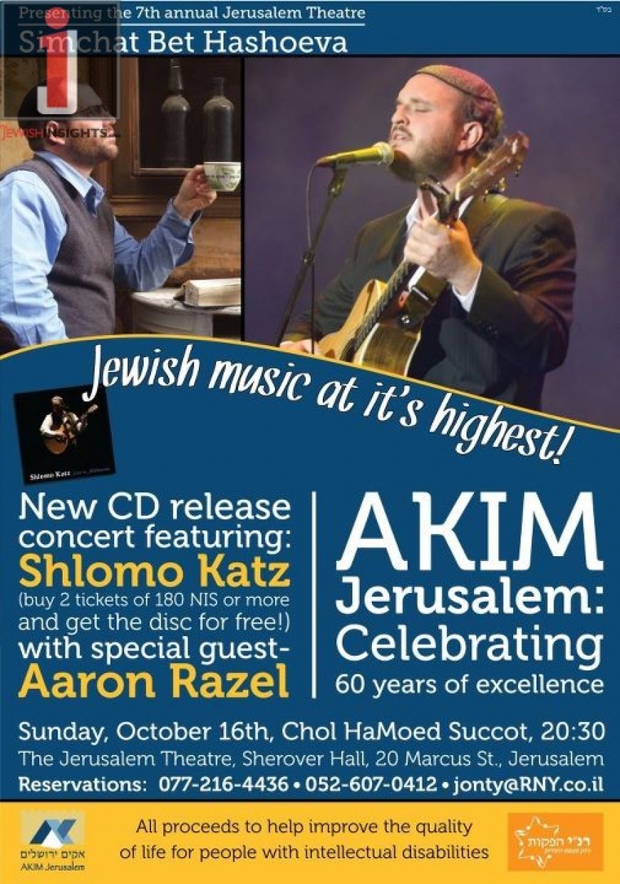 Presenting the 7th Annuall Jerusalem Theatre Simchat Bet Hashoeva with SHLOMO KATZ & AARON RAZEL