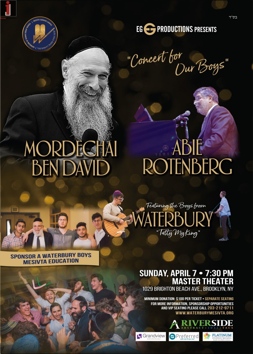 EG Productions Presents “CONCERT FOR OUR BOYS” Starring: MORDECHAI BEN DAVID & ABIE ROTENBERG