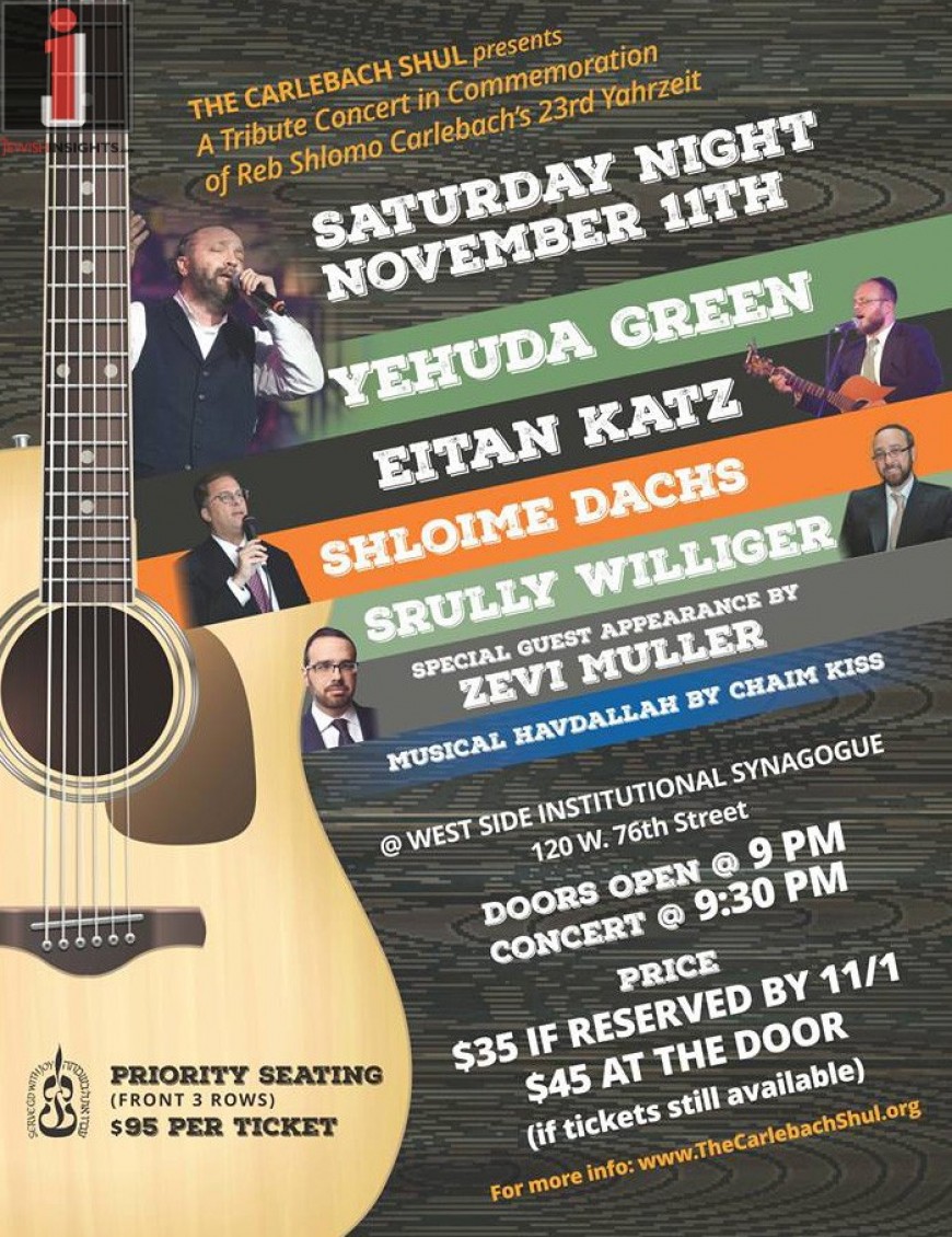 Reb Shlomo Carlebach Yahrzeit Concert With YEHUDA GREEN, EITAN KATZ, SHLOIME DACHS & SRULLY WILLIGER