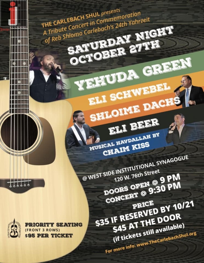 Reb Shlomo Carlebach Yahrzeit Concert With YEHUDA GREEN, ELI SCHWEBEL, SHLOIME DACHS & ELI BEER