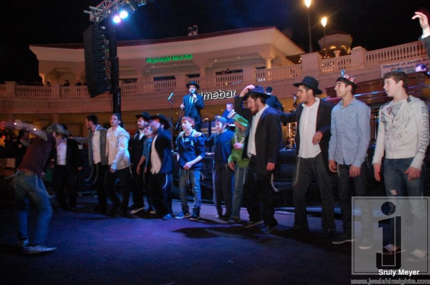 Last night, Wednesday Dec. 8, the last night of Chanukah, was the 31st Annual South Florida Chanukah Festival. The event welcomed a crowd of over 10,000 people! The show was held at Gulfstream Park in Hallandale Beach, FL. The evening’s performances included singing sensation Benny Friedman, nine-year old piano prodigy Ethan Bortnick, Child soloist Yisroel Amar, Yossi Bayles and his YBO Orchestra, the amazing twin Hassidic Acrobats from France, and the lighting of Florida’s Largest Menorah led by Cantor Rabbi Yossi Lebovics. A Menorah car parade drove through the streets of Miami, and culminated at the show.