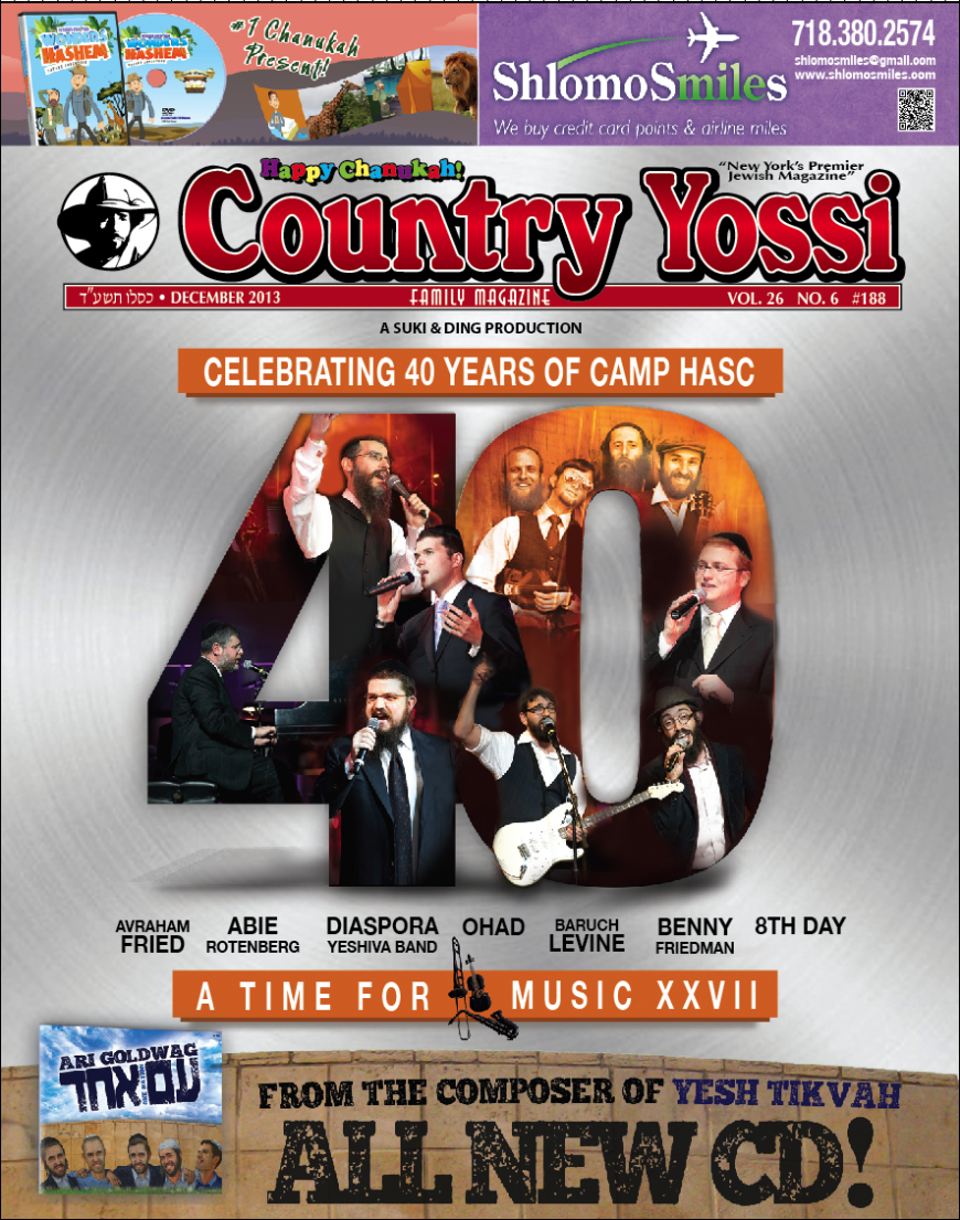 Country Yossi‘s Spectacular Chanukah issue rocketing for a Friday release featuring 40 years of Camp HASC and a Star-studded ensemble of Jewish music artists like Avraham Fried, Ohad, Eighth Day, Diaspora Yeshiva Band, Benny Friedman, Abie Rottenberg and Boruch Levine!