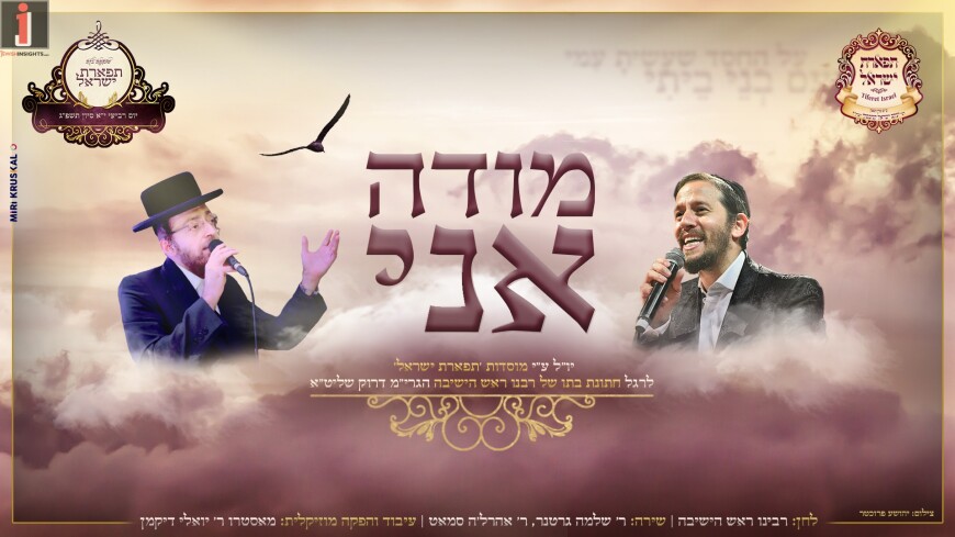 Modeh Ani is the new single being released in honor of the Tiferes Yisrael Mosdos, headed by R’ Druck Shlita, in honor of his daughter’s wedding to the granddaughter of R’ Kahaneman from Ponovezh. The song is a duet between R’ Ahreleh Samet and Shloime Gertner, and composed by R’ Druck himself. The song was arranged and produced by Yoeli Dickman.