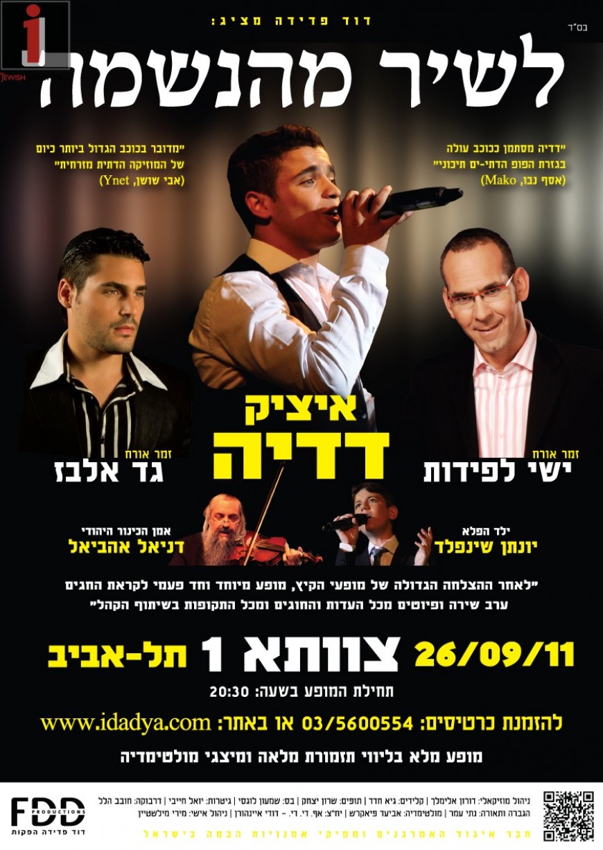 The show will take place two days before Rosh Hashana on 26/09/11. A week before the show, Itzik will release a NEW song called “Adam” that will be a duet with Gad Elbaz.