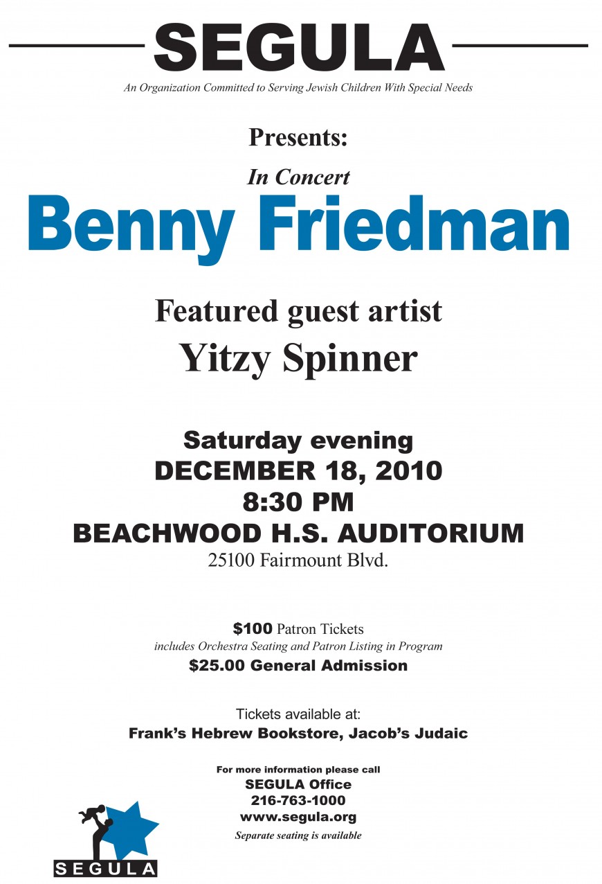 SEGULA presents: Benny Friedman in concert with featured guest artist Yitzy Spinner