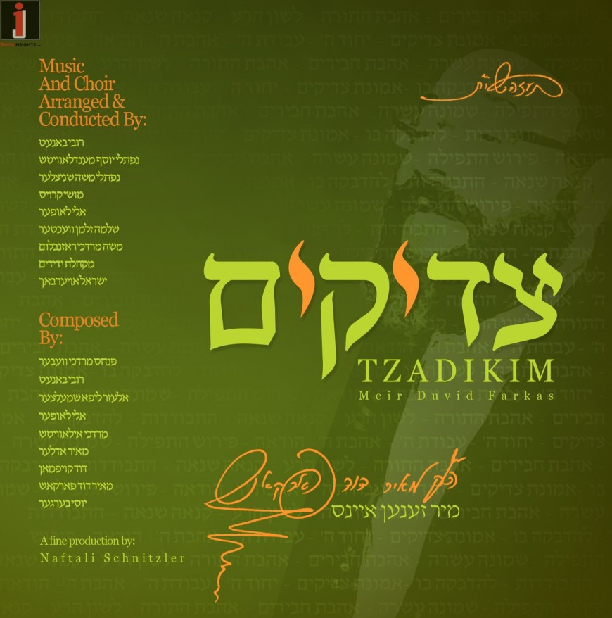 “Tzadikim” is a masterful compilation of twelve original compositions from the world’s most respected Jewish composers: Pinky Weber, Ruvi Banet, Lipa Schmeltzer, Eli Laufer, Motty Ilowitz, Meir Adler, Duvid Kaufman, Meir Duvid Farkas himself and more. Music arranged by Naftali Schnitzler, Ruvi Banet, Eli Laufer and Mona Rosenblum.