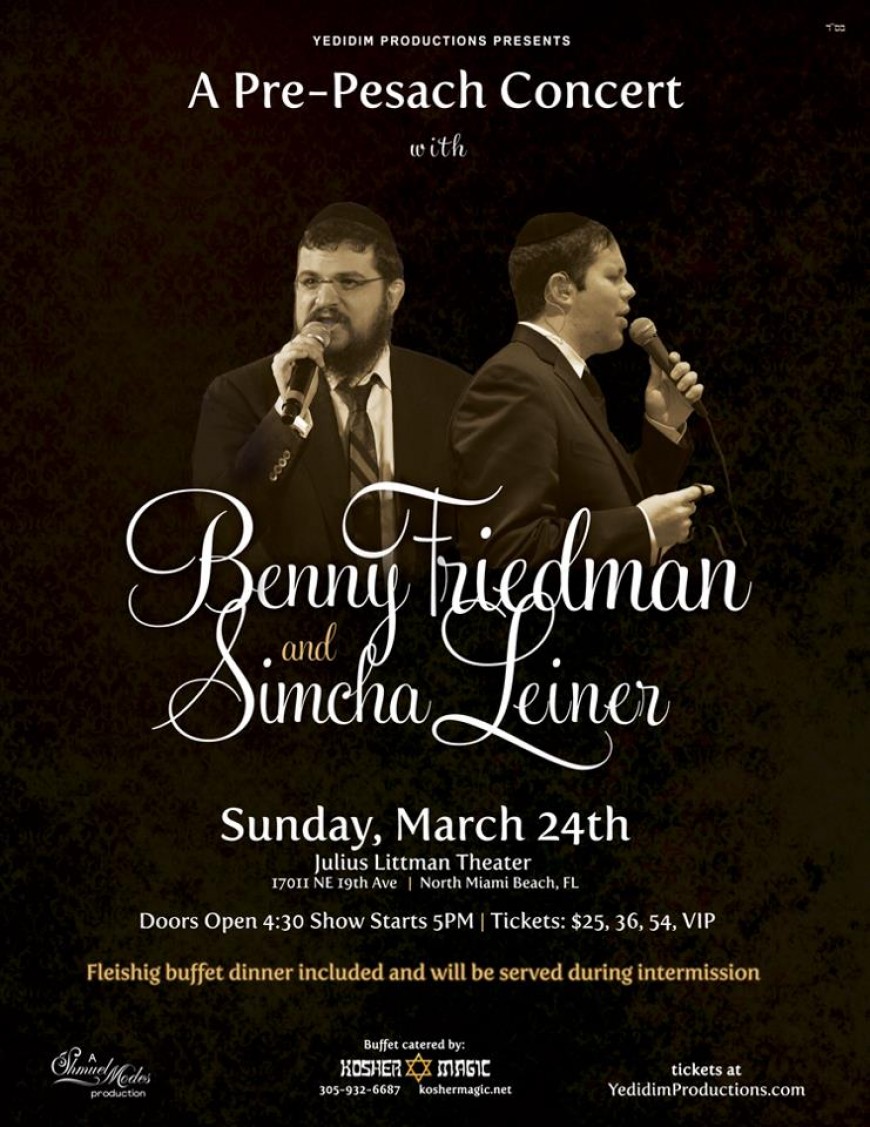 Yedidim Productions Presents A Pre-Pesach Concert with BENNY FRIEDMAN and SIMCHA LEINER