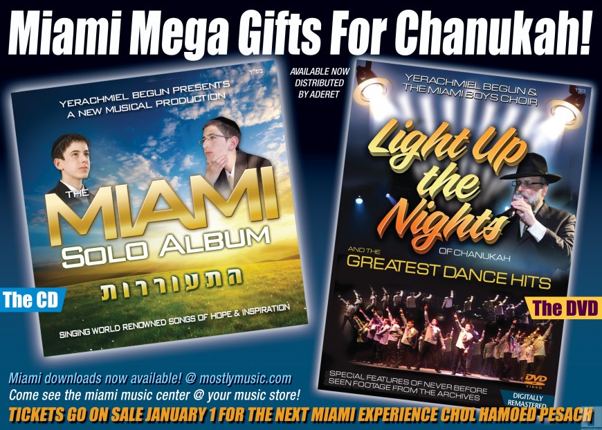 Also announced: Tickets for the MIAMI EXPERIENCE 3, coming Chol Hamoed Pesach to Brooklyn college will be available starting January 1 from jewishtickets.com. The greatest shows are being planned.