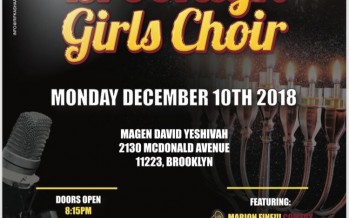 Chanukah Concert For The Very First Time!!! DOBBY BAUM & THE BROOKLYN GIRLS CHOIR Monday December 10th, 2018 Magen David Yeshiva 2130 McDonald Avenue Brooklyn, NY 11223 Featuring: Marion Fine – Comedy Chava Rosenbaum – MC Doors Open 8:15pm –