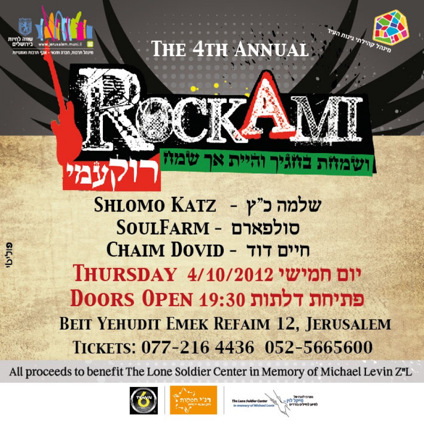 The 4th Annual ROCK AMI CONCERT with SHLOMO KATZ, SOULFARM & CHAIM DOVID