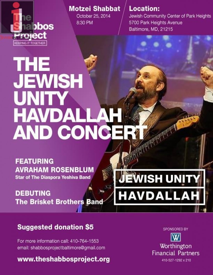 Baltimore’s Jewish Unity Havdallah & Concert: Avraham Rosenblum & The Brisket Brothers Band