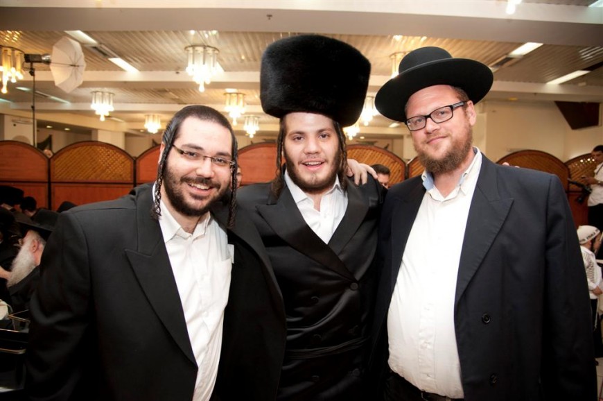 The photo above is of the Chosson with Yaakov Rotblat and Yisroel Bergman. Photograph by Mendy Ohr.