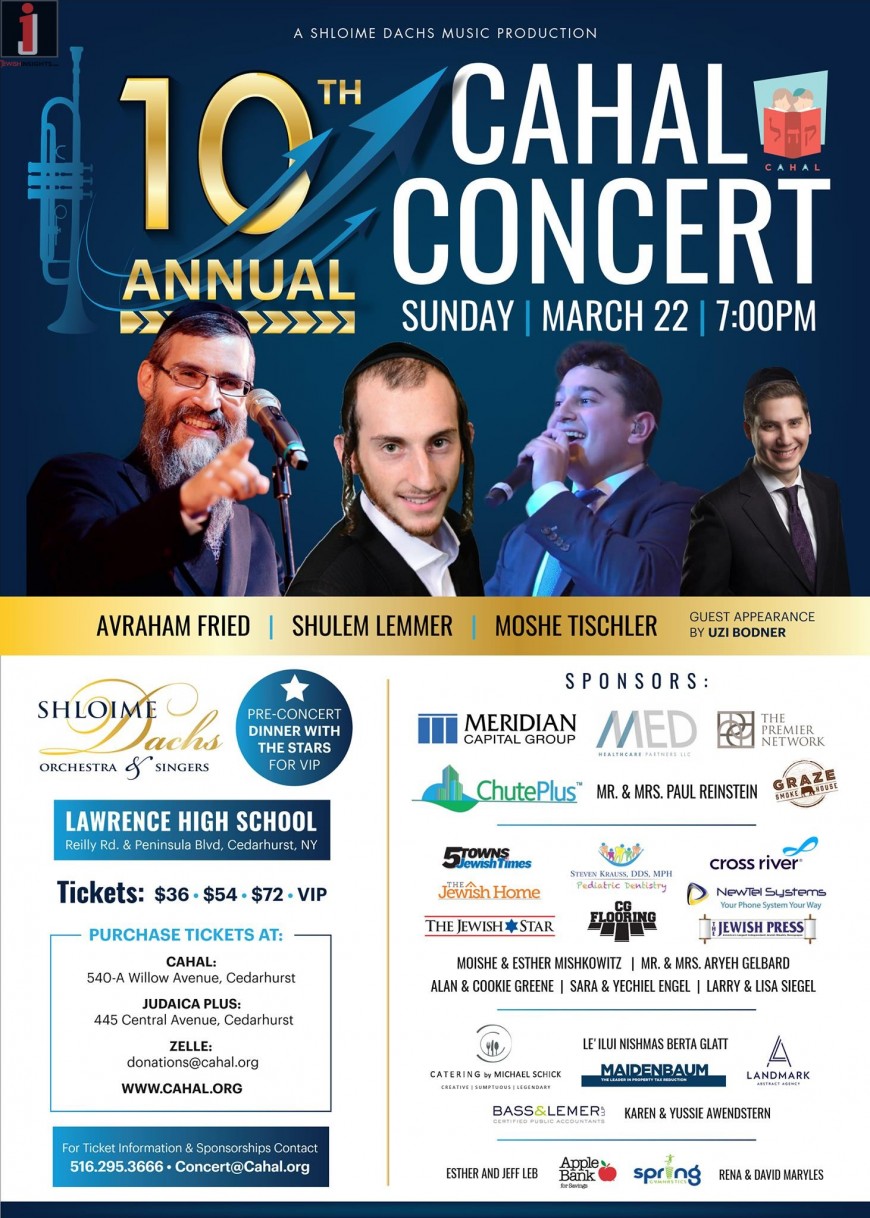 CAHAL CONCERT! AVRAHAM FRIED, SHULEM LEMMER & MOSHE TISCHLER