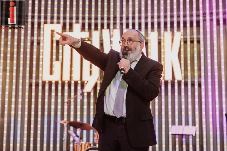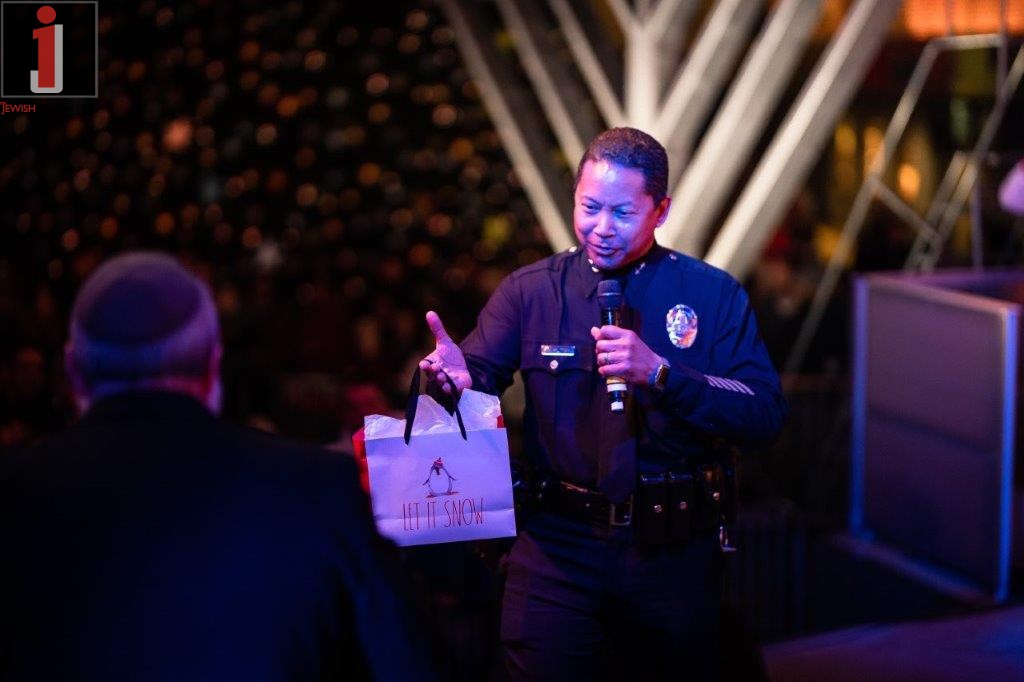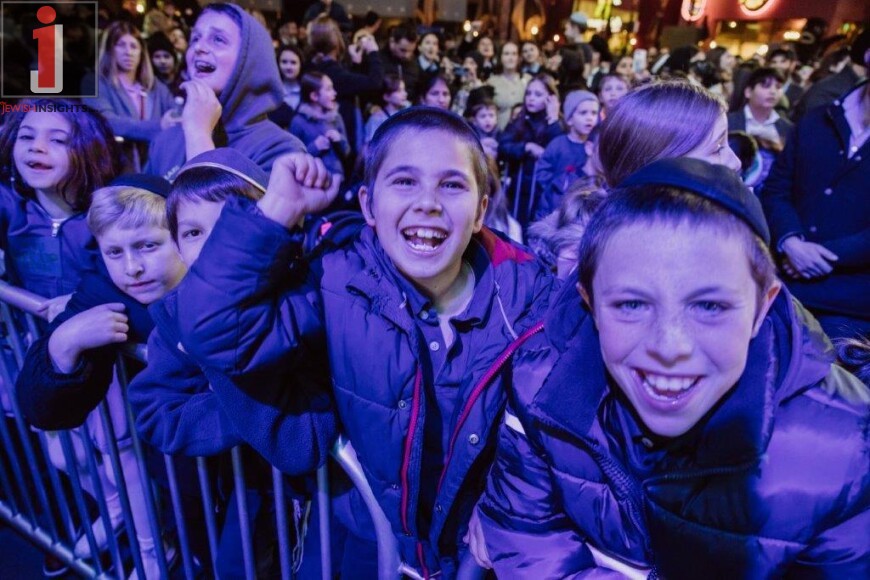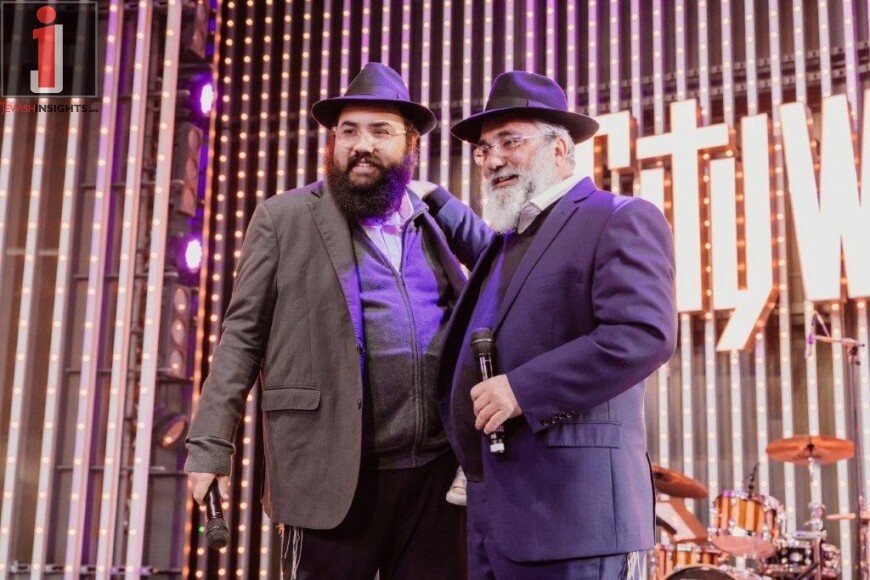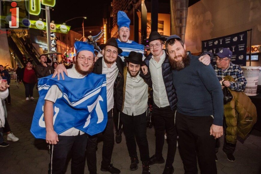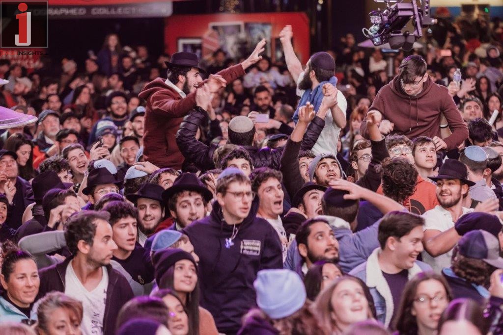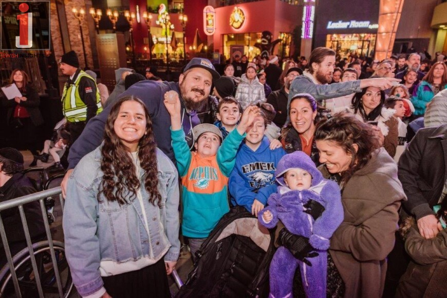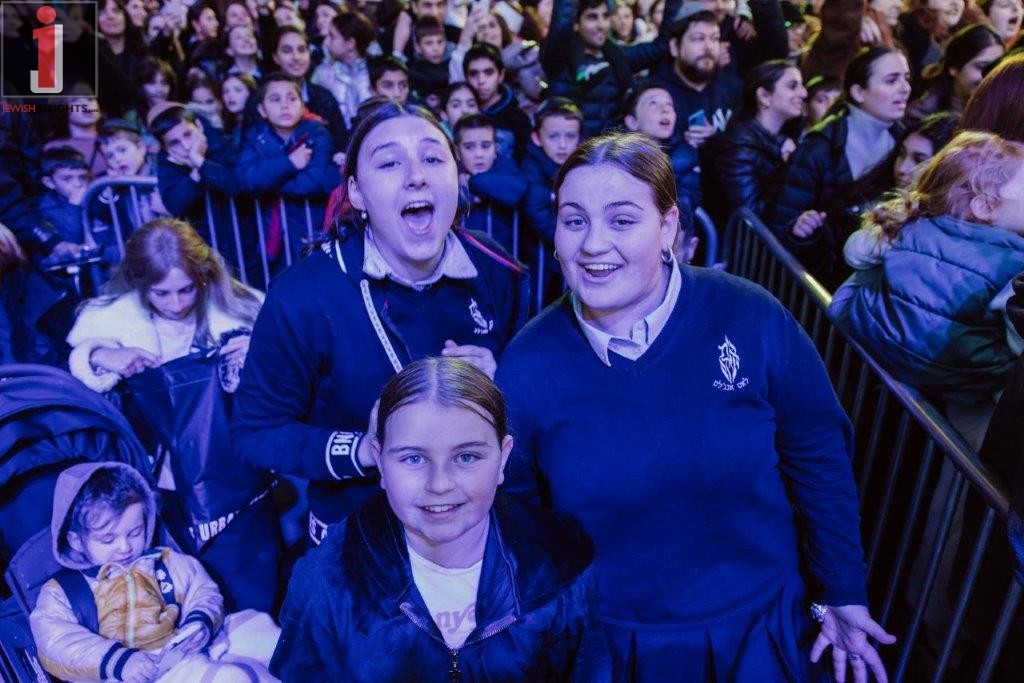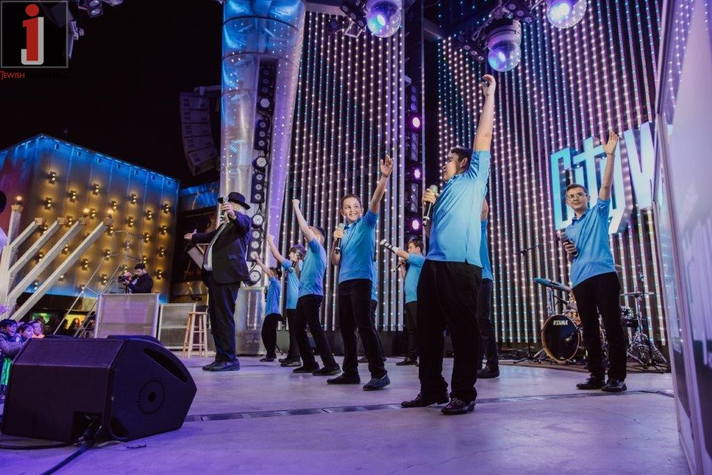 The giant stadium-sized screen was a focal point all evening, showcasing all the live onstage entertainment along with video footage displaying the far reach and impact that the Lubavitcher Rebbe and the Chabad Lubavitch movement has had throughout the world, with Shluchim bringing the positive message and the light of Chanukah to 1000 cities across the globe.
