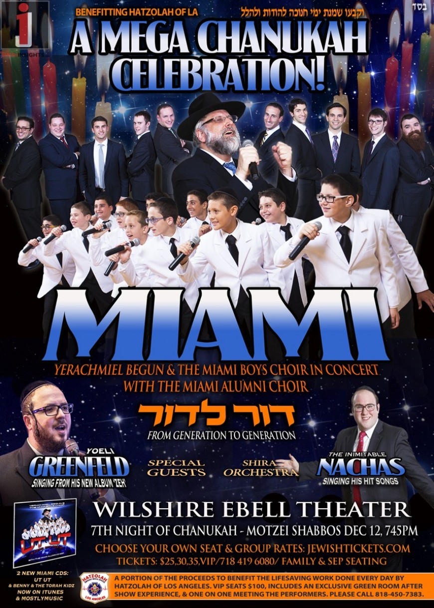 Coming off their latest hit album UT UT, Yerachmiel Begun & the Miami Boys Choir are coming to LA Chanukah time, for what promises to be a rousing simcha & Chanukah celebration.
