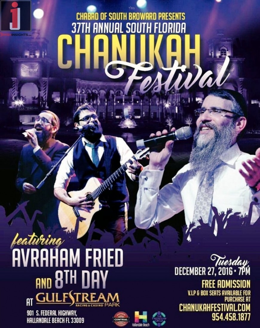 Come join us for Chabad of South Broward‘s 37th Annual South Florida Chanukah Festival featuring world renowned artists Avraham Fried and The 8th Day!!!!!