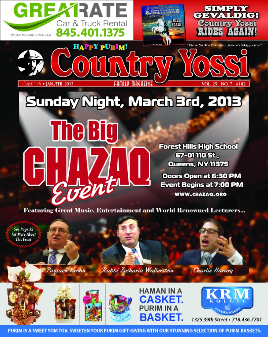 Country Yossi Magazine’s most Hilarious jam-packed Purim issue ever will be out on Friday featuring A National Yenta Purim supplement so outrageous Jewish Music fans will be plotzing till Pesach! Between that, Kayla Kuchleffel and the Z report we suggest you reserve a copy today so you wont be disappointed!
