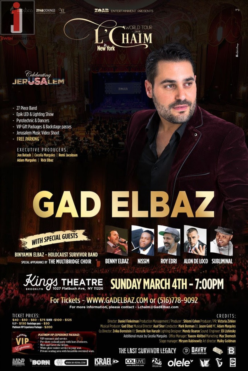 GAD ELBAZ L’Chaim Tour in NY – March 4th