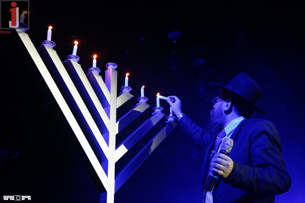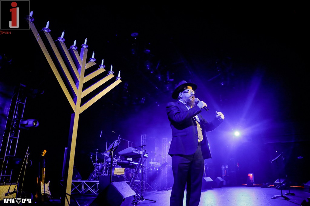 The concert started with the French singer Steve Lucas singing three songs and then R’ Shlomo Cohen lit the Chanukah candles and spoke about Chanukah a little bit.