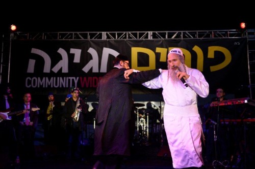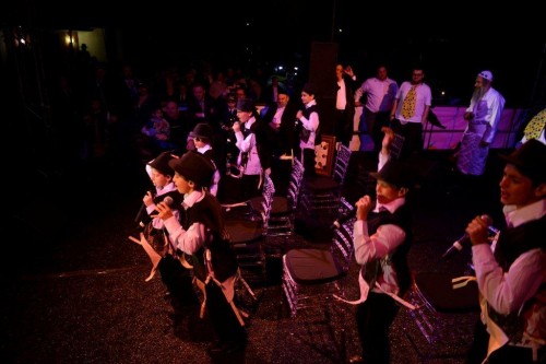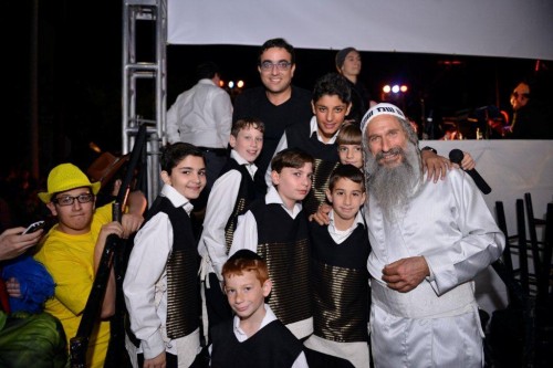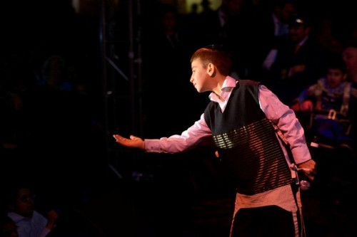 During the show Mordechai Ben David invited the Kinderlach to join him for a duet of the popular song “Ono Melech” which was composed by the host of the evening Rabbi Shlomo Rechnitz.