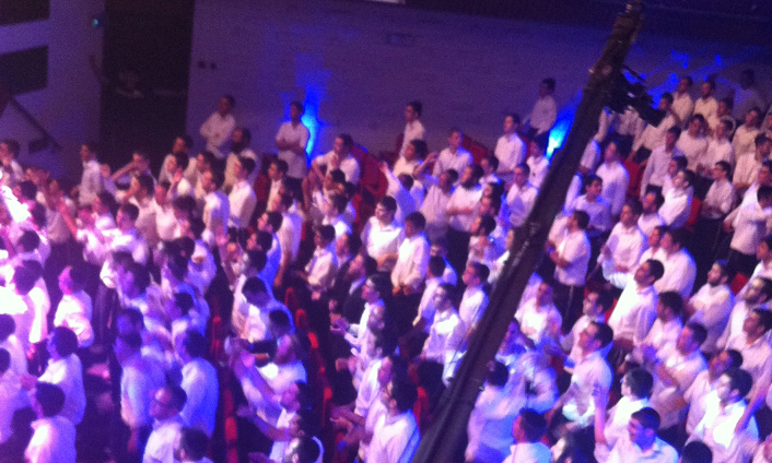 This past Wednesday night in Israel in a remote studio location the second KUMZING was filmed. For those who don’t remember, KUMZING was a very unique type of product released just two short years ago. Presented/produced by Shalom Wagshul of Haminagnam Orchestra and Moishy Roth, this product is basically a LIVE Kumzits in a controlled environment. MEANING they invited a few hundred bochurim in Israel to come to a closed studio (like a television studio, a stage and audience) which has hi def equipment to tape + record audio and taped the entire thing. KUMZING 1 went on to sell very well in both Israel and the US. The featured artists included Lipa Schmeltzer, Dovid Gabay, Beri Weber, Yosef Chaim Shwekey, Udi Davidi and Ori Avraham. The DVD/CD also featured special guest Rabbi Chaim Banet and the running time was2 ours and twenty minutes. You can purchase the first KUMZING HERE!.