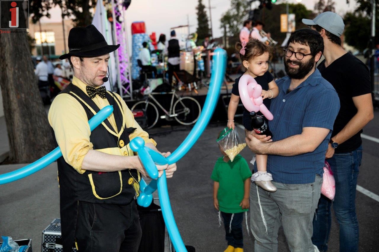 The Family Succos Festival and Concert also featured street performers, balloon artists, a stilt walker and a variety of food vendors all keeping the streets of Hollywood on a closed off Burbank Boulevard filled with dancing and excitement.