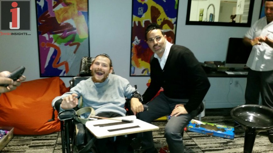 Daniel Mizrachi‘s story is truly fascinating. Many years ago he was diagnosed with cerebral palsy and now he is considered one of the most affected people in Israel by this disease. Nonetheless, he does not seek out pity or to be considered as a nebach. Cerebral Palsy may have gotten him physically, but it has also taught him a thing or two about meaningfulness in life. The perspective he got from being in a wheelchair was very eye-opening to him. A number of months ago he wrote a letter to El Al asking for the company to fulfill his life’s dream of coming to America and being at the Kever of the Lubavitcher Rebbe. He waited a few months, until he received a response from El Al saying that they would fulfill his request! They gave him three tickets, one for him, and two more for those who would aid and assist him medically on his journey. He was so excited, and he contacted Zevi Fried from the Shira choir, who connected him to and and took him to visit some of the major names in Jewish music, such as MBD, Yeedle, Lipa, Yaakov Shwekey, and Yossi Green. Daniel also sang some of his own compositions for these artists and they will be featured on his album.