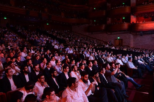 Over 1,500 people gathered in Sao Paulo, Brazil’s Bradesco Bank Theater to mark the 18th anniversary of Yeshiva Ohel Menachem Lubavitch, with performances by Mordechai Ben David and Yossi Green.