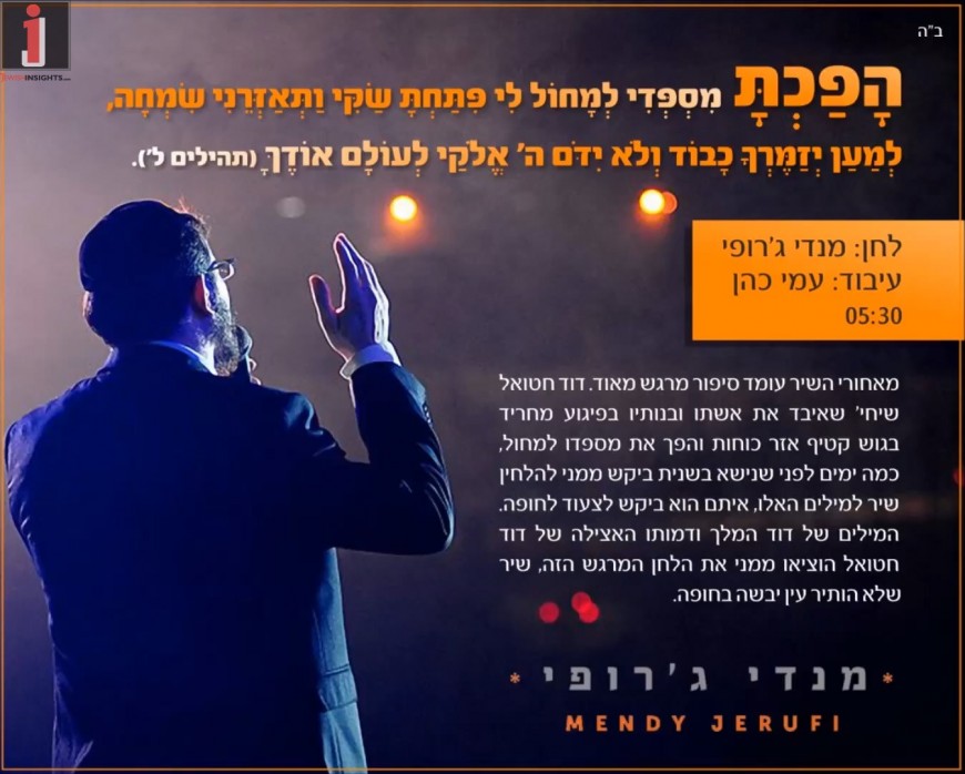 Singer Mendy Jerufi took the opportunity to produce a song for the emotions that everyone in the Jewish world is feeling, using the words “Lemaan Yezamercha Kavod…Hashem Elokai Leolam Odecka.”