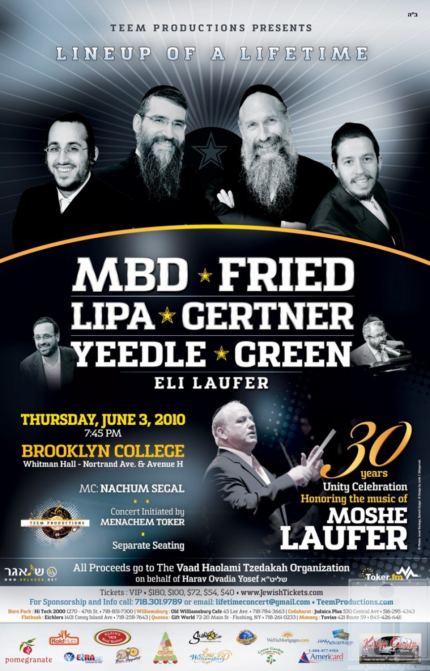 Avraham FriedELI LAUFERLipaLipa SchmeltzerMBDMenachem TokerMoishe LauferMordechai Ben DavidNachum SegalShloime GertnerTeeM ProductionsYeedleYossi green Related Articles