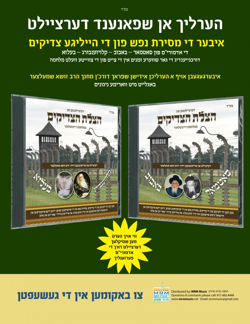 2 Brand new CD’s have just been release entitled Hatzolas Tzadikim which feature Zishe Shmetzer retelling stories of the Holocaust of how the Satmer Rebbe, Bobov Rebbe, Belz Rebbe and Klosenburg Rebbe survived the devastation in Europe.
