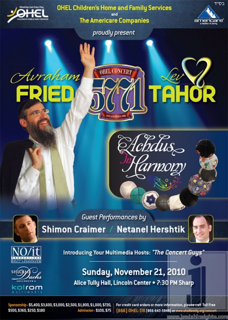 Well you read the review. Here are some of the very special videos that were shown during the OHEL 5771 Concert “Achdus In Harmony”.