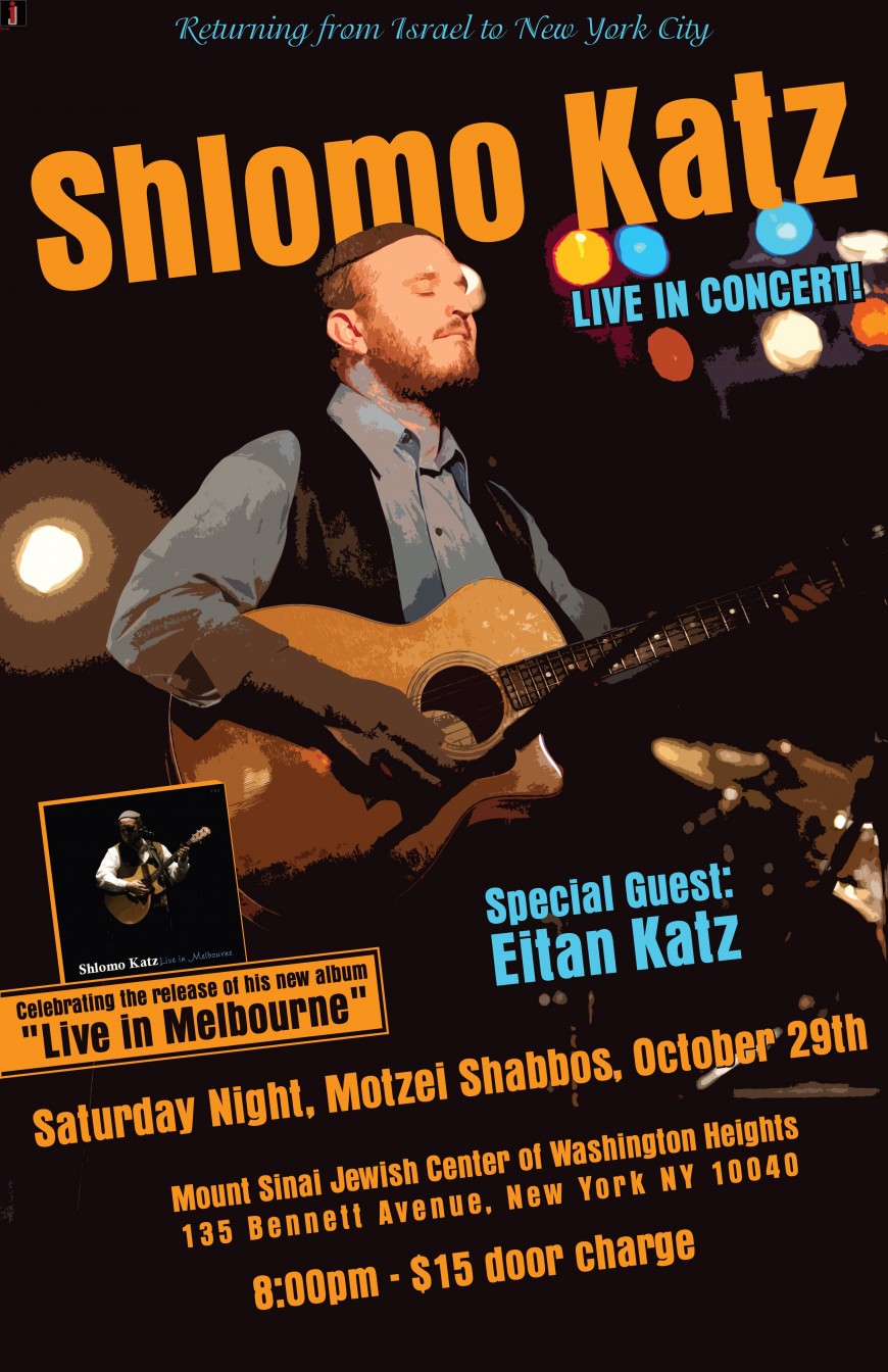Returning from Israel to New York City SHLOMO KATZ: LIVE IN CONCERT!