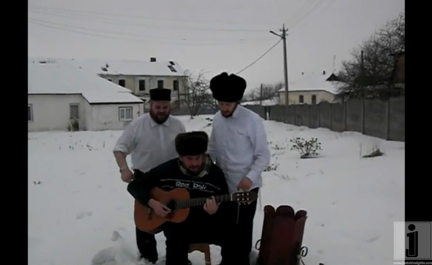 Shlomie Gertner, Gershy Moskowitz, and a guitarist Dancing away in Mezibush