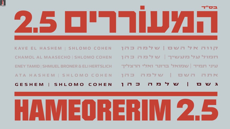 Eliezer Schwebber from the Ha’Meorerim series is releasing a new series of five songs, 4 of which are sung by Shloime Cohen, the third of which is called Geshem. The song is taken from the words of Tefillas Geshem.
