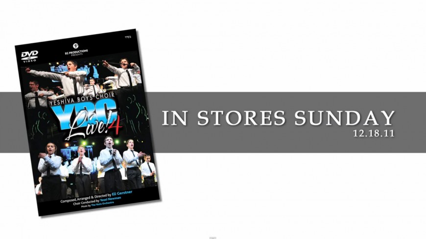 Eli Gerstner and EG Productions bring you the future of Jewish DVD’s presenting YBC Live! 4. This fourth installment of the YBC Live series is a little different than the rest. It will star YBC (conducted by Yossi Newman) as you have never seen them before. The DVD will be divided into 2 parts, half consisting of live performances from 3 shows in NY this past Succos and half ALL NEW MUSIC VIDEOS. Of course there will also be a BRAND NEW YBC song called “Baruch Haboh”, written special for this project, as well as extras like bloopers and behind the scenes. It will also include 2 versions of the ever so popular “Ah Ah Ah”, the dance version & the live version. It will be available both on DVD & CD at any of your local Judaica stores and online at www.JewishJukebox.com.