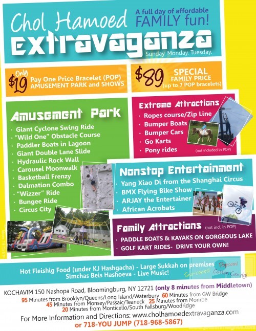 With so much going on everywhere be it concerts, simchas beis hashoeivas or family events, we decided to pack all of the information into one post here divided by the city and days of chol hamoed.