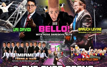 B’ruchim Habaim! Welcome back! Yerachmiel Begun & Shirainu presents An amazing family show @ The Grand Cure Arena! Thurs. Chol Hamoed April 1. 3 Shows 1130am, 3pm, 630pm. Featuring the amazing daredevil acts of BELLO!, Baruch Levine (3:30 & 6:30
