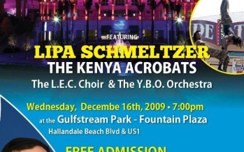Over 10,000 are expected to attend the 30th annual south Florida Chassidic Chanukah Festival, which will include performances from popular Jewish music star Lipa Schmeltzer and the Kenyan Safari Acrobats. The L.E.C. Choir will perform and music by the YBO
