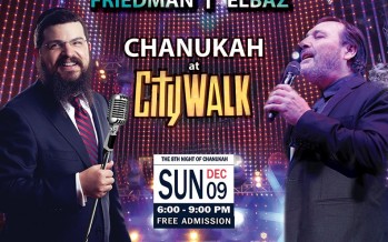 Los Angeles, California – Thousands to Gather and Celebrate the Festival of Lights as Chabad of the Valley celebrates its 17th Annual Chanukah Festival at Universal Studios CityWalk Hollywood on Sunday night, December 9th, 2018 the eigth night of Chanukah