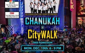 Los Angeles, California – Thousands to Gather and Celebrate the Festival of Lights as Chabad of the Valley celebrates its Annual Chanukah Festival at Universal Studios CityWalk Hollywood on Monday night, December 19th, 2022 the second night of Chanukah from