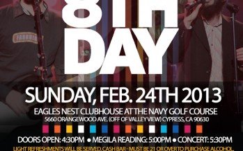 8th Day Sunday Feb, 24th 2013 Eagles Nest Clubhouse at the Navy Golf Course 5660 Orange Wood Avenue Cypress, Ca. Doors open at 4:30 PM Megila Reading at 5:00PM Concert 5:30 PM Light refreshments will be served Buy tickets online