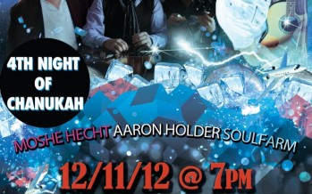 MIAMI CHANUKAH MUSIC FESTIVAL 4TH NIGHT OF CHANUKAH MOSHE HECHT – AARON HOLDER – SOULFARM 12/11/12 @ 7pm $15 IN ADVANCE ONLINE PAYMENT $20 AT THE DOOR PAX 337 SW 8th Street, Miami, Fl aaronholderworld.com