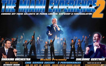 Miami comes back to the NY-NJ area Chol Hamoed Succos for 2 World Class High Energy Performances of THE MIAMI EXPERIENCE 2. The new shows will take place Sunday eve. September 26 at the beautiful Colden Center in Queens College