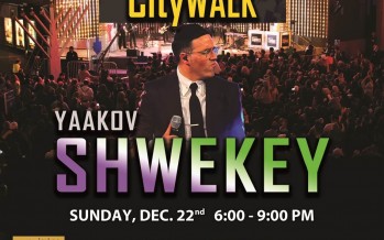Los Angeles, California – Jewish superstar, Yaakov Shwekey will be featured at this year’s Chanukah @ CityWALK – 18TH year celebration. Thousands will gather and celebrate the Festival of Lights at Chabad of the Valley’s Annual Chanukah Festival at Universal
