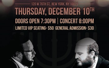 5th Night of Hannukah SHLOMO & EITAN KATZ LIVE IN CONCERT West Side Institutional Synagogue 120 W 76th st, New York, NY 10023 THURSDAY, DECEMBER 10th Doors Open 7:30pm = Concert 8:00pm Limited VIP Seating – $50, General Admission –