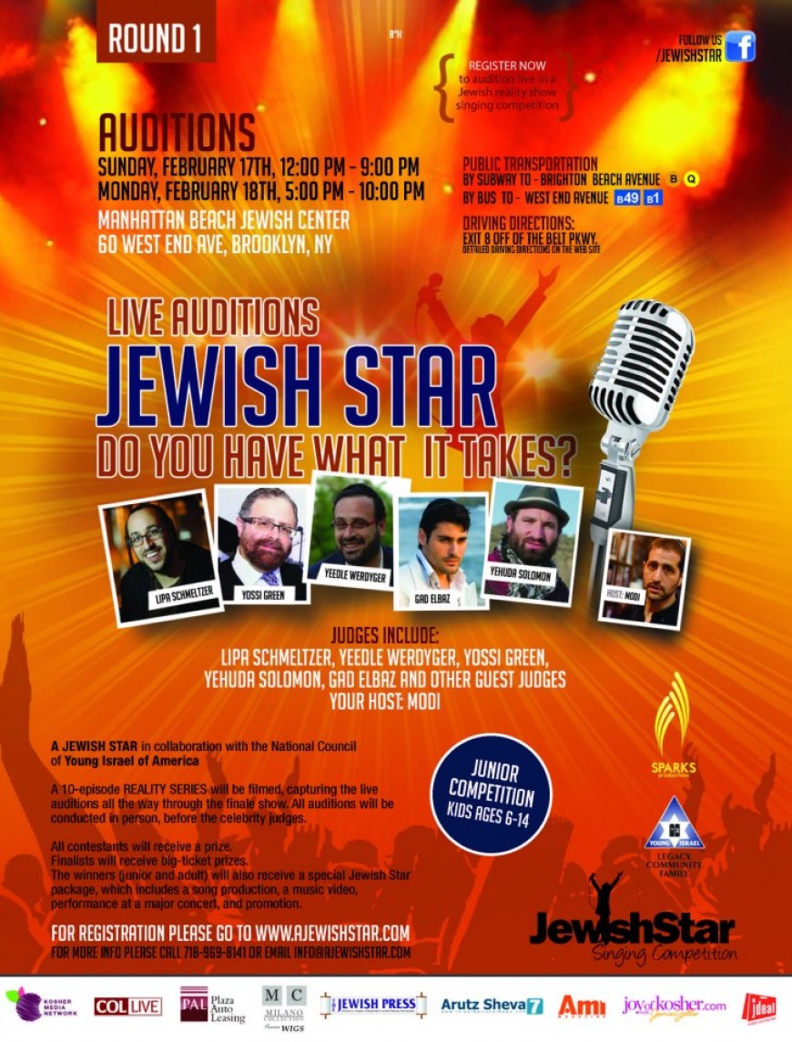 The Jewish star international singing competition is back! This year they have upped the ante. LIVE auditions in front of judges which will be filmed and then available online to watch. Register now! http://www.ajewishstar.com/audition-2013-registration