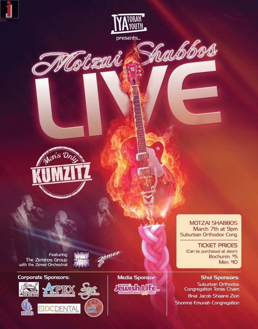 TYA Presents Motzai Shabbos LIVE Men’s Only Kumzitz With The Zemiros Group