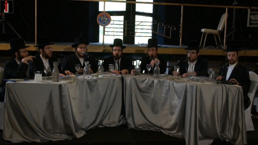 The choir featured professional singers Yoely Horowitz, Zevy Fried, Shraga Gold, Levy Falkowitz, Moishe Eisenberg, Menachem Moskowitz, and soloist Yoely Greenfeld.